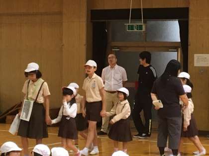 10月4日(木)朝の児童集会では、並び方の練習や手をつなぐペアの確認をしました。服部緑地公園では、なかよしファミリーでオリエンテーリングをしたり、弁当を食べたりするので、上級生が下級生のお世話をしなければなりません。現地で安全に行動できるよう、ポイント間を移動する練習もしました。