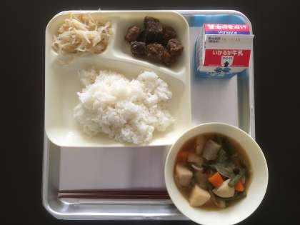 11月7日(水)の給食は、「くじらの竜田揚げ」でした。1年生の中には、初めて鯨肉を食べるという子もたくさんいました。珍しい鯨料理は、子どもたちにとって人気のメニューで、完食でした。