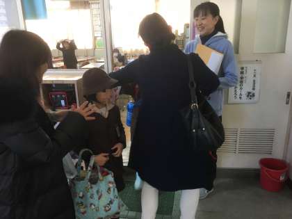 大災害の時に備え、「緊急時引渡し確認カード」を用意し、それに基づいて児童を保護者等に引き渡しました。児童は、おうちの人に守られ、一緒に下校しました。