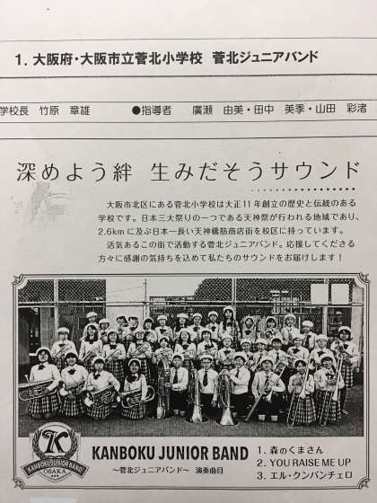 菅北ジュニアバンドが大阪府代表として「2019年 全国小学校管楽器合奏フェスティバル 第36回西日本大会」に出場します。15府県26団体が参加する大会です。