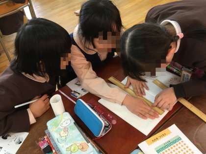 30cmものさしを使って測りましたが、両手を広げた長さ「ひろ」を30cmものさしで測るのは大変です。どうすれば、簡単に測れるかも考えました。