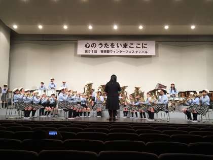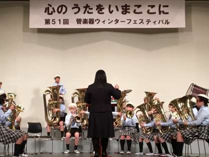 2月3日(日)、「第51回 管楽器ウィンターフェスティバル -心のうたをいまここに-」が開催され、本校からも、菅北ジュニアバンドが出演しました。この大会は、未来を担う子ども達に管楽器活動を通して交流を深めるとともに、豊かな情操を養うことを目的としており、大阪府下の小学生のバンド、25団体が出場しました。菅北ジュニアバンドは、「森のくまさん」「YOU RAISE ME UP」「エル・クンバンチェロ」を演奏しました。