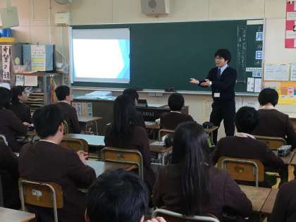 6年生は、11月には天満中学校を訪れ、中学校で授業を受けています。また、このような中学校の授業体験のほかにも、9月には中学校の体育大会見学、10月には文化活動発表会を参観しています。