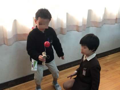 小学校の中では一番小さく、これまでお世話してもらうことが多かった1年生ですが、今回は年下の園児を楽しませようと、張り切っていました。幼稚園の子どもたちを楽しませようと、一生懸命、遊びを教える1年生の、この1年間で成長した姿が頼もしく感じられます。また、始めは緊張していた園児たちも、一緒に遊ぶ中で気持ちがほぐれ、楽しく遊んでいました。1年生は園児の世話をすることで、自分の成長を自覚するとともに自分は役に立っていると感じたことでしょう。