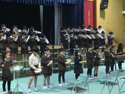 4月になると、1年生も一つお兄ちゃん・お姉ちゃんになります。自分たちも入学式の時に今の2年生から歓迎の演技で迎えてもらっています。今度は、自分たちが新入生をお迎えする番です。今、張り切って歓迎の言葉や歌、合奏の練習をしているところです。