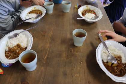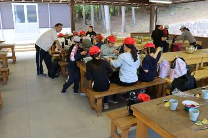 悪戦苦闘しながらも,どの班もおいしいカレーが完成したようで「うちのカレー食べてや、おいしいで」と近くの友だちや先生に宣伝している子もいました。