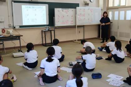 まずは,自分自身を見つめて「強み」を2つ探しました。強みを探している子どもたちは,とても真剣に自分自身と向き合っていました。最後にクラスのみんなで,強みマップを作りました。