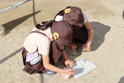 記録をすることで、影の位置がどんどんと変わることが目で見て分かり「影が動いてる!」と驚きの声が上がりました。それと同時に「太陽って東から西に動くんだ…!」と、普段の生活と結びついた瞬間だったようでした。