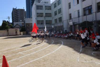 開閉会式担当の児童や、応援団に入団している児童は、朝や放課後に毎日練習しています。今日はその練習の成果を全校の前で発揮することができました。