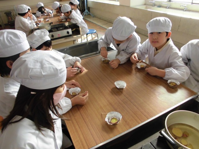 今日は「おいもパーティー」をしました。自分たちが育てたさつまいもを食べてみて、「甘い!」「買ったさつまいもよりおいしい!」と