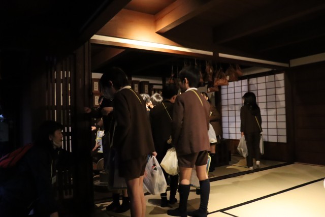 当時の、くすり屋さんや着物屋さんなどが並んでいました。また、家の敷地内に井戸があったり、かまどがあったりと子どもたちにとって初めて見るものが多く、とても楽しんでいました。