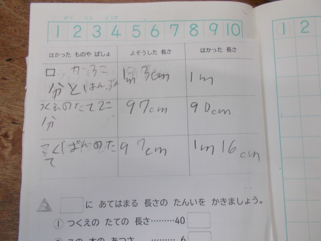 「先生のつくえの横はぴったり1mだった!」「よそうよりも1cmだけちがった~!」