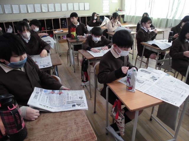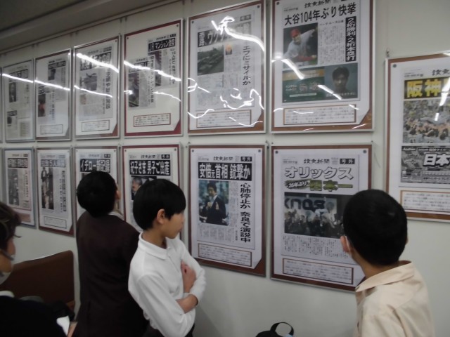 今日はお土産に一人一部ずつ今日の夕刊をいただきました。子どもたちは刷りたての新聞を一枚一枚めくって、どんなことが書いてあるのか確かめていました。新聞を読む機会も減り、活字を読まなくても携帯やタブレットの画面をスクロールすることで、自分の欲している情報を手軽に手に入れることができる現代に生きる子どもたちにとって、日々の情報がどのように自分たちに伝わっていてるのかを知るよい機会になったのではないかと思います。