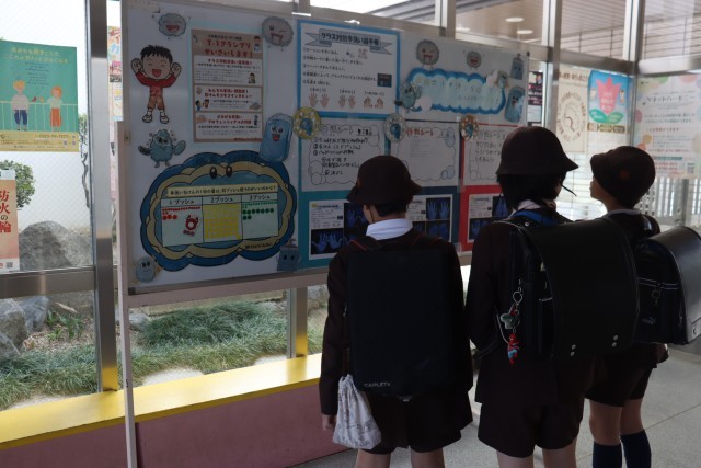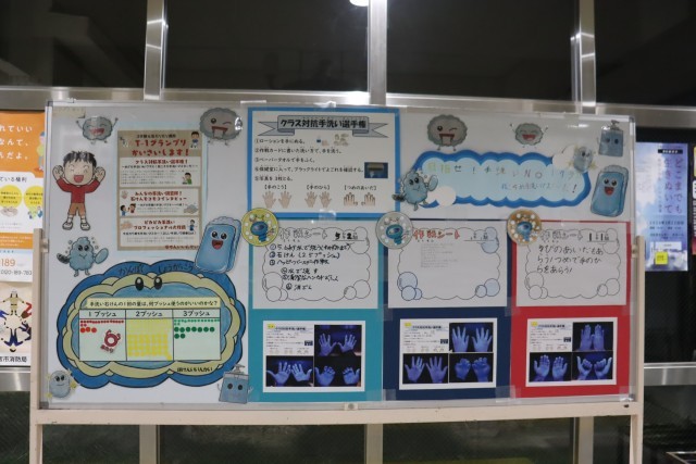 各クラスの手洗い作戦とインタビュー結果を玄関に掲示しております。ぜひご覧ください。
