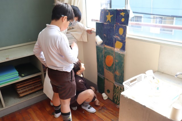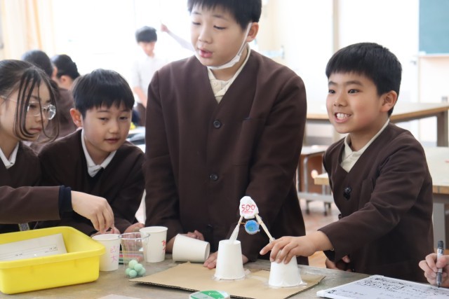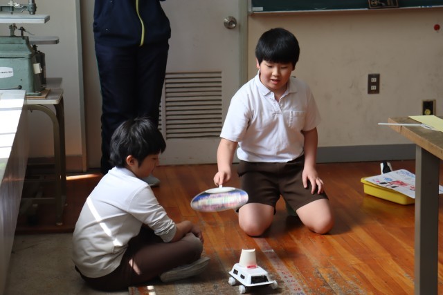 ゴムで動くもの、風で動くもの。磁石のはたらきをつかったもの、電気のしくみを活かしたもの。各チームもそれぞれの特徴を活かしてゲームを考えました。また、自分たちが楽しく、そして友だちにも楽しんでもらうための工夫が、言葉がけやルール等にたくさん見られました。楽しい笑い声や友だちのすごさを称える声掛け、優しいアドバイスの声。そんな声がたくさん聞こえてきた時間でした。