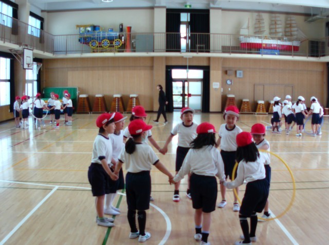 昨日発育測定が終わったので、3年生の新しい背の順を確認した後、横歩き・スキップなどいろいろな動きで走ったり、友だちと協力してフープをつないだり、逃げたりと体いっぱい動かしました。