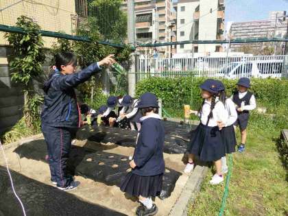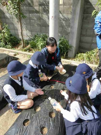 4月16日の6時間目、学年のトップを切って3年生が夏野菜の栽培活動をスタートしました!