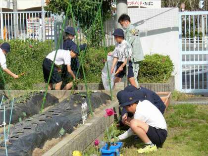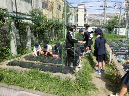 6時間目に6年生がエダマメとトウモロコシの種まきを行ないました、さすがに6年生!スムーズに作業が進み、学習園の雑草抜きも行ってくれました!