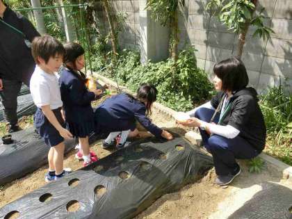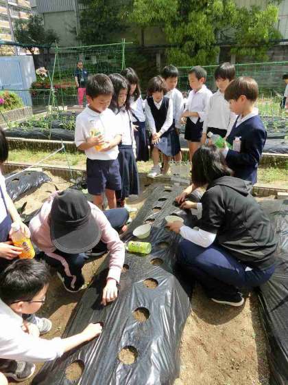 5時間目には、2年生が、ナス、ピーマンの植え付けと、トウモロコシの種まきを行ないました!