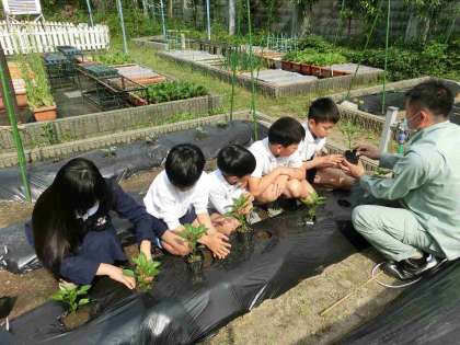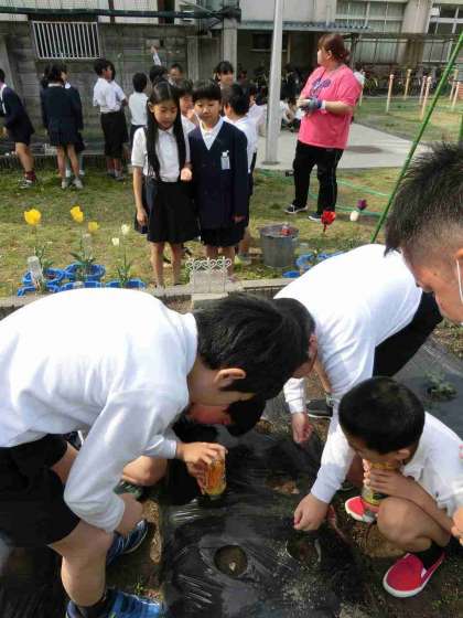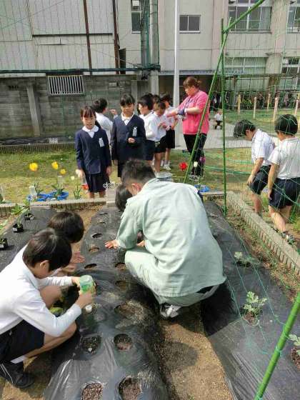 4年生は、1時間目にピーマン、スイカの植え付けとトウモロコシの種まきです!