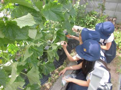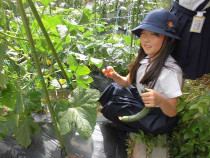 1年、3年、なかよしのキュウリさらには2年、4年のピーマンです!