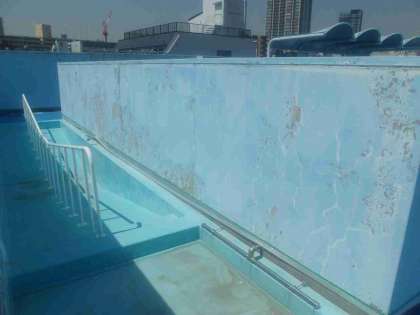 プール開きに向けて、管理作業員さんが傷んだ壁を塗り直してくださいました。