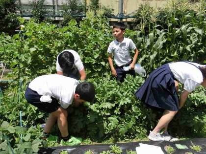 学習園の夏野菜収穫もいよいよ佳境を迎えています!昨日(6月13日)は飼育栽培委員会が4月に播種した「夏ダイコン」を収穫しました!
