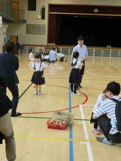 「算数」の授業参観と「昔遊び体験」を行ないました。