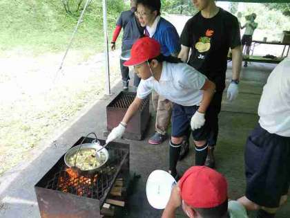 二日目の昼食は、飯ごう炊爨、ご飯を炊き、カレーを作ります!