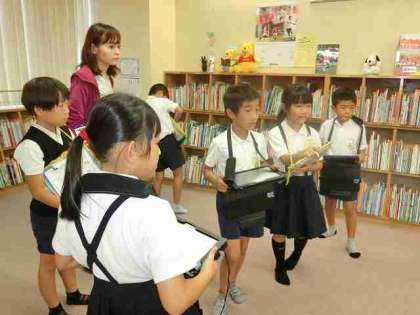 館内をタブレットをもって調査開始です!