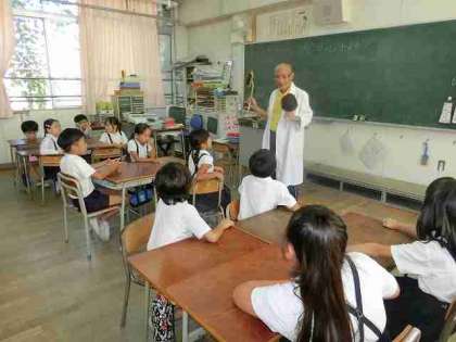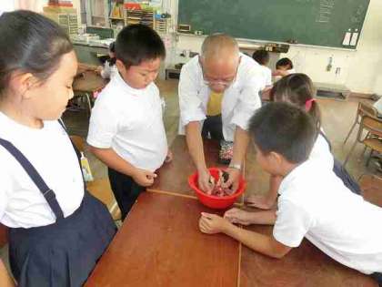 これを確かめるために、本日10月9日、「白衣の先生」を講師に招き、理科の特別授業となりました、ヒマワリは開花後、乾燥させるため、軒下におよそ2か月間、風乾していました!