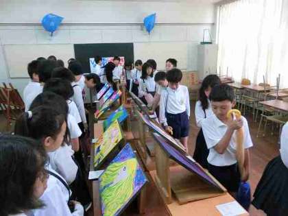 部活動や各教科の作品を鑑賞し、最後に舞台発表を見学しました!