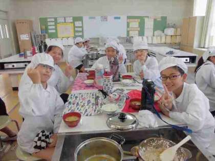 週末の木、金曜日に5年生がご飯の炊き方、味噌汁の作り方の調理実習を行ないました、味噌汁の具材は、もちろん豊東で取れた「ダイコン」と「ダイコン葉」、もちろん産直です!