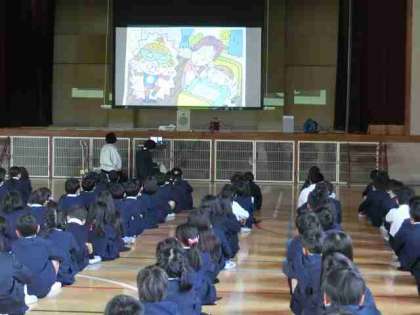 毎週水曜日は児童集会を行っています、今週1月22日は、保健委員会が日頃の活動を発表しました!