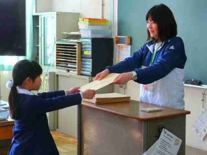 コロナ対策で放送による修了式となりました、各教室で放送を聞き、最後に通知表が手渡されました!