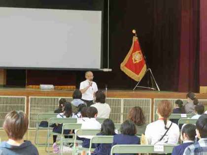1年生は講堂で、入学にかかわるオリエンテーションを行いました。