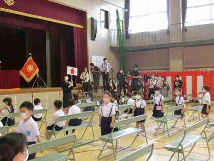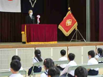 6月15日、およそ2か月遅れの入学式・始業式を挙行しました。62名の1年生です。多くの保護者の皆様方もご参加いただきました。