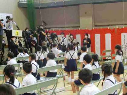 多数のテレビ局や新聞社の取材の中での入場です。そして、校長式辞と続きました!
