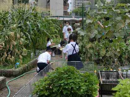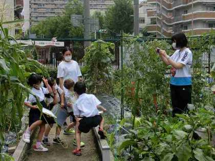 校舎外の学習園も探検しました、旬の夏野菜がいっぱいでした!