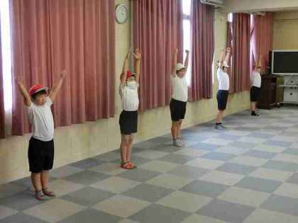 こちらは体育委員会、ラジオ体操の練習です!みんなのお手本となるべく、特訓かな?