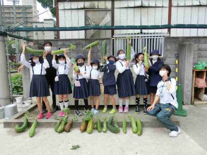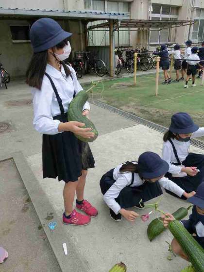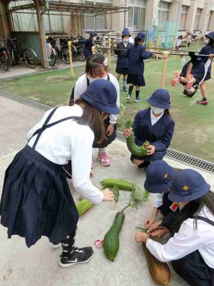 春に植え付けたヘチマを、4年生が10月22日に収穫しました!