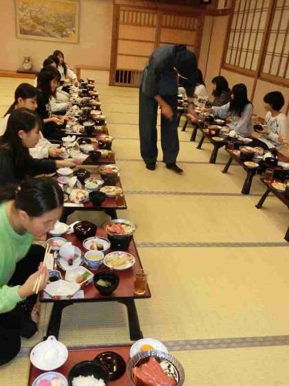 宿泊地の琵琶湖グランドホテルに到着し、天然温泉で疲れをいやした後は、夕食の始まり・始まり・・・・・