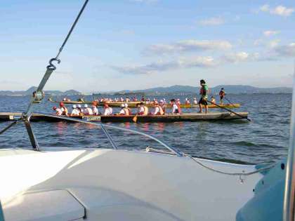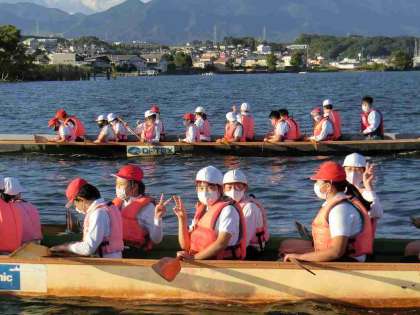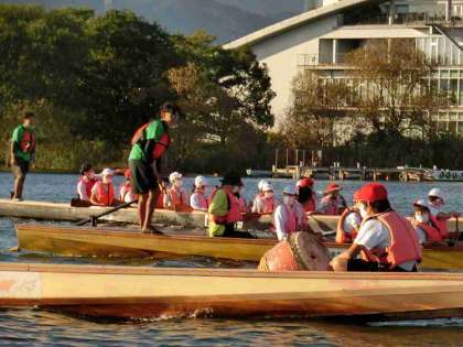 カヌー体験の後は、三艇に分かれてドラゴンボートです!