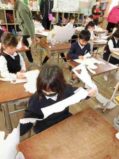 ちぎった画用紙が「何に見えるか?」を討論し、自分の意見を発表します!