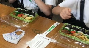 そのため、外でお昼御飯が食べられないので、宿舎の中で、横一列に並んでのお昼御飯です。
