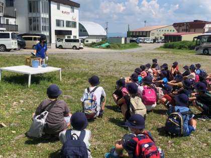 午後2時過ぎから、宿舎前の高原で焼き板づくりを始めました。