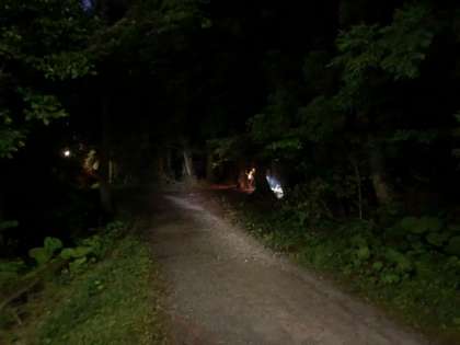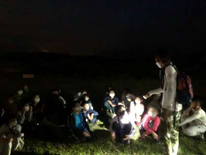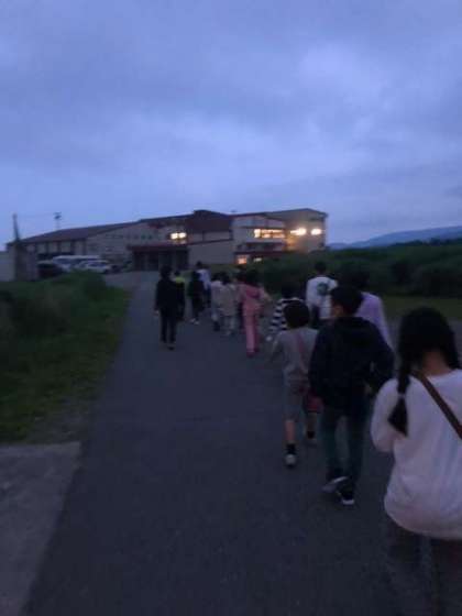 夕食が終わると、宿舎の近くを散歩しました。暗くなるまで散歩してから、お待ちかねのナイトハイク。川田先生と校長先生に脅かされてびっくりして尻もちついてる子もいたようです。
