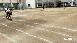 運動会の練習では、リレーのバトン練習を中心に行っています。はじめのうちは、バトンを落としたり、渡すときにスピードが落ちたりと、なかなかうまくいきませんでしたが、チームで練習を重ね、かなり上達しました。