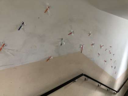 秋といえば・・・ 公開日 2021/10/01 更新日 2021/10/01 お知らせ 運動会が終わって、校舎内を散歩すると、階段に秋の気配が・・・たくさんのトンボが並んで飛んでいました! さて、どこでしょう?探してみてください。 ↓ 正解はこちら ↓ 閉じる 4年生の教室よこの階段です。 4年生がつくってくれたトンボです。 いいね(0)