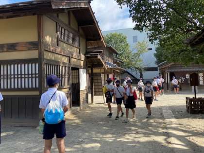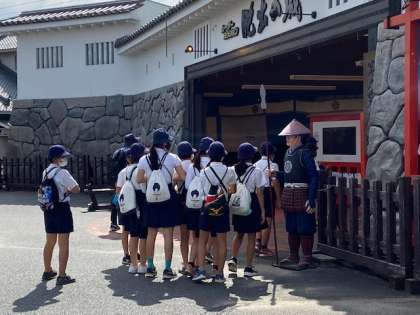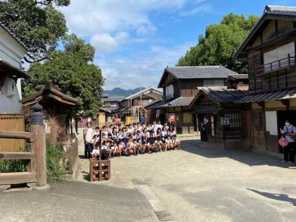 太秦映画村到着!最初に集合写真を撮りました。これから、グループに分かれて活動します。
